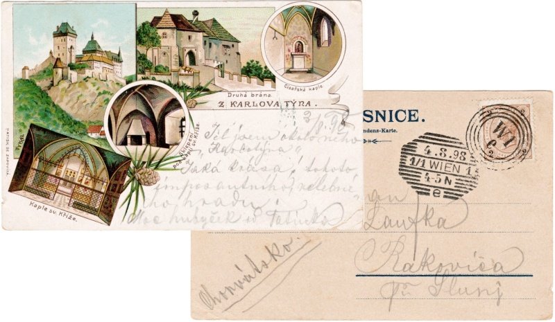 Karlův Týn, barevná litografie, 1898, stav velmi dobrý