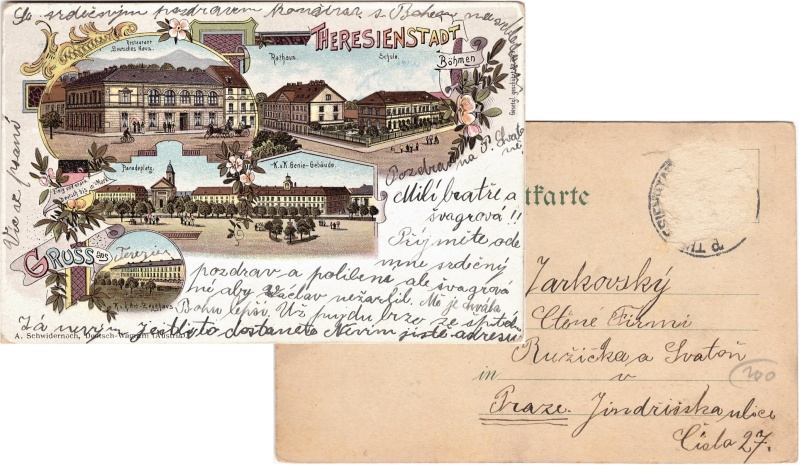 Terezín, barevná litografie, K. Schwidernoch, 1904, stav velmi dobrý
