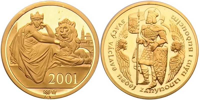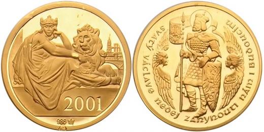 Zeman K. - Dukát 2001 sv. Václav, Au 986, puncováno, 20mm, 3.49g, etue