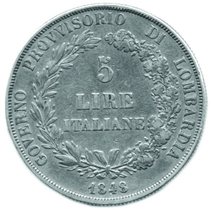 5 Lire 1848 M - krátké konce ratolestí nad letop.