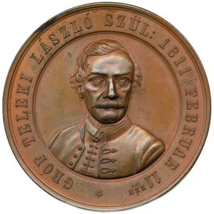 Uhry - Gróf Teleki László, poprsí čelně / úmrtní medaile 1861 sign.: A.Kleeberg bronz 58 mm Mont: 1555