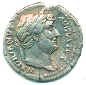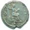 Denár, sedící Roma zprava na hromadě zbraní drží kopí a parasoniu m, dole globus COS III RIC 163, Sear 3472