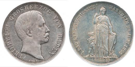 1 Gulden 1863 - 1. střelby v Mannheimu KM 247_nep.rys.