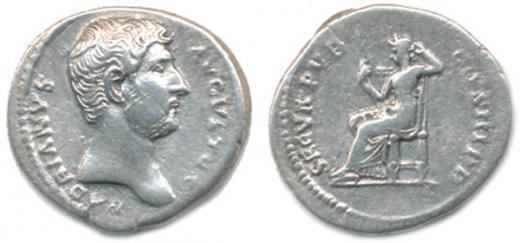 Denár, sedící Securitas zleva, drží žezlo a levou rukou si podpír á hlavu SECVR PVB COS III PP RIC 221; S 3541