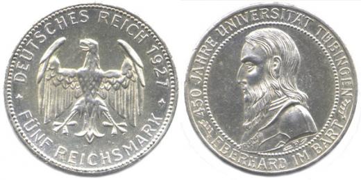 5 RM 1927 F - univerzita Tübingen KM 55 "R"