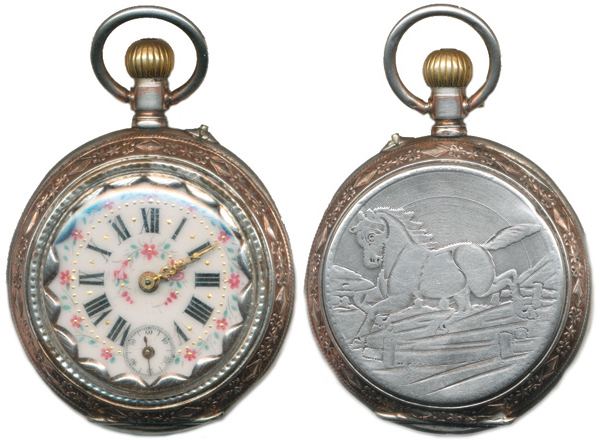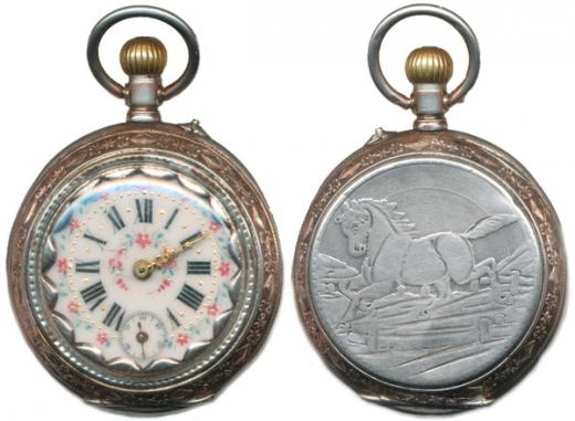 Ag pánské třípláśťové kapesní hodinky b.zn. - selské - 45 mm římský číselník, gravírované (rv. kůň nad překážkou) - jdoucí