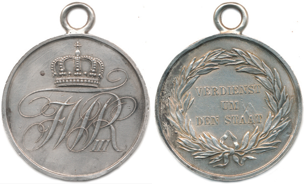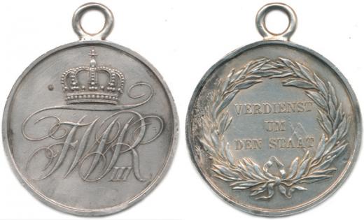 Friedrich Wilhelm III. - medaile "VERDIENST UM DEN STAAT" Nim. obr.1821 Ag 40 mm raž.ouško_bez stuhy