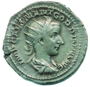 Antoninián, císař se závojem obětuje u oltáře a drží žezlo PM TRP II COS PP RIC 37; Sear 8637; Kank. 19