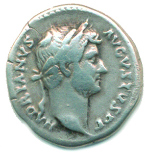 Denár, sedící Abudantia zleva drží hák a roh hoknosti, u nohou ko š s obilím COS III Sear 3474, RIC 170