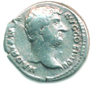 Denár, stojící Salus zprava, krmí hada na oltáři SALVS AVG RIC 267, Sear 3540