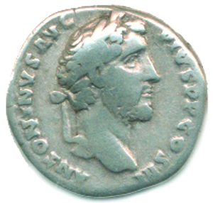 Denár, stoj.Pax drží květinu a roh hojnosti PAX AVG Sear 4096, RIC 78b