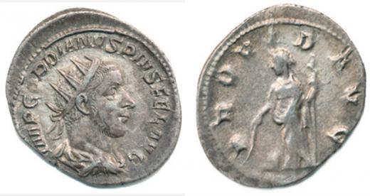 Antoninián, stoj.Providentia drží prut a žezlo PROVID AVG Sear 8654; RIC 149