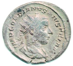 Antoninián, stoj.Sol se zvednutou pravou rukou, v levé drží globu s AETERNITATI AVG RIC 83; Sear 8603