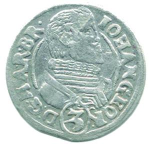 3 kr. 1618 CP SA 125/ -, erb v rovném štítu ! opis: IOHA N GEOR. () D:G.MAR.BR. / GROS.ARC III CRV. 618. (zn.) tečka před a za korunou