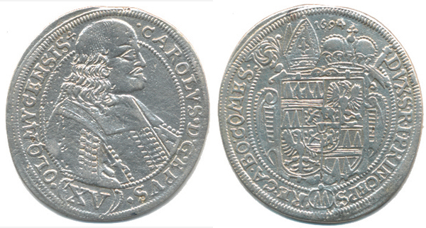 XV kr. 1694 zn. špice S-V 389 E7/D4 var.: minc. značka v ová lu
