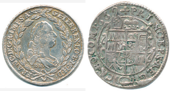 3 kr. 1669, zn.špice SV 322 E/B5 var.: úzké poprsí, za OLOMVCE NSIS: (dvojtečka)