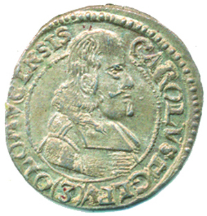 3 kr. 1670, zn.špice, var.:úzké poprsí, var.: poprsí nevystu- puje dole z obvodku jako u všech uvedených typů, S-V tento typ neuvádí v opise zkratka: EPV "R"