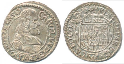 3 kr. 1670, zn.špice, var.:úzké poprsí, var.: poprsí nevystu- puje dole z obvodku jako u všech uvedených typů, S-V tento typ neuvádí v opise zkratka: EPV "R"
