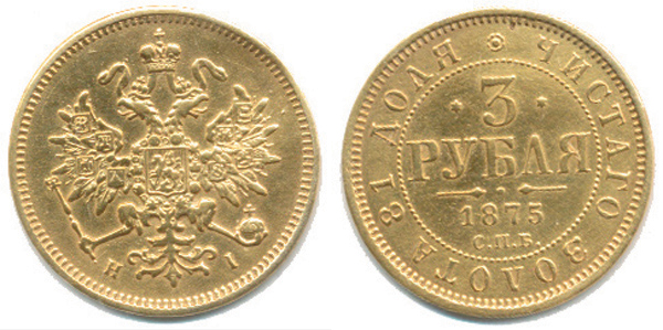 3 Rubl 1875 SPB / HI (pozdější ražba) 3,82 g