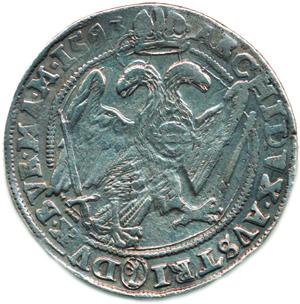 Tolar 1593, K.Hora-Herold jako MKČ 366, ale před opisem trojt ečka RVDOLPHVS.II.D.G.RO.IM.S.A.G.H.B.R / ARCHIDVX.AVSTRI() DVX.BVR.MA.M.1593 mincm.zn. č.2