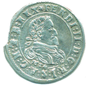3 kr. 1624 b.zn., Krain (Kraňsko) "RR"_vada stř. na hraně