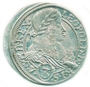 3 kr. 1665 FBL, Kladsko-de Lisola jako MKČ 1647, opis: D: G.R.I.S.().A. "R"