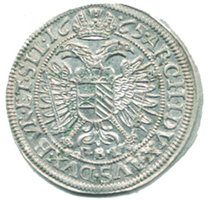 3 kr. 1665 FBL, Kladsko-de Lisola jako MKČ 1647, opis: D: G.R.I.S.().A. "R"
