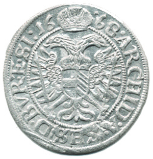 3 kr. 1668 SHS, Vratislav-Hammerschmidt MKČ 1619 var. poprsí, op is: D..BVR.E.SI:
