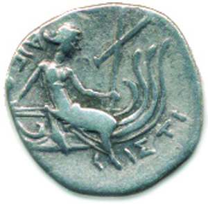 Diobol, hlava nymfy Histiaie zprava / Histiaea sedí na galéře 1,20 g
