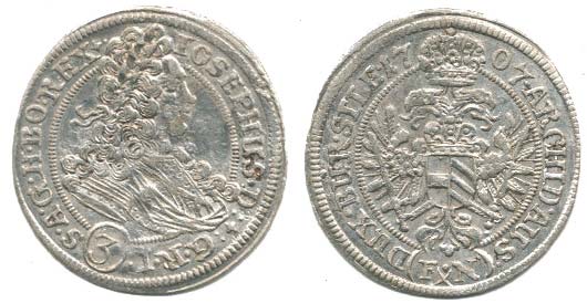 3 kr. 1707 FN, Vratislav-Nowkk MKČ 1760 var.: pod rozděl. t ečkou ve značce je malý řížek ! "RR"