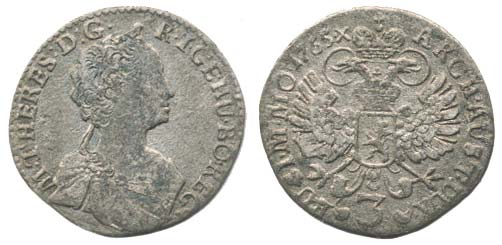 3 kr. 1765 b.zn., Praha-Erdmann MKČ 1973_tém.