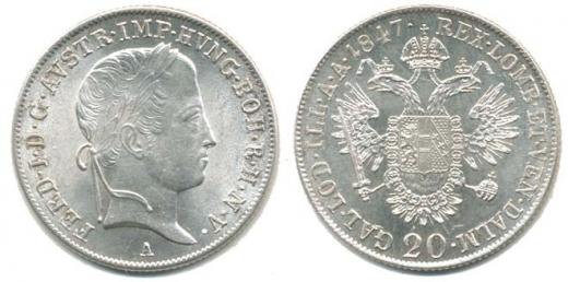 20 kr. 1847 A "R" "sbírkový stav"