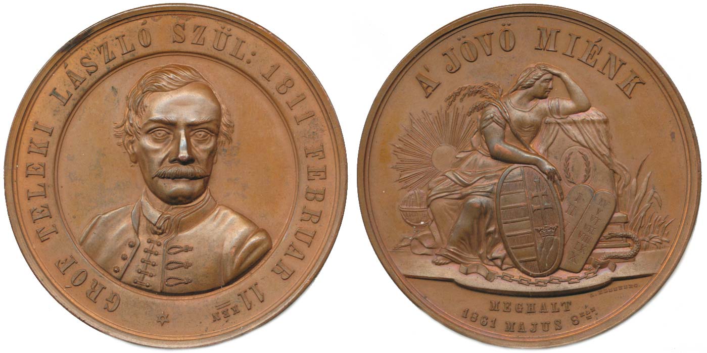 Uhry - Gróf Teleki László, poprsí čelně / úmrtní medaile 1861 sign.: A.Kleeberg bronz 58 mm Mont: 1555