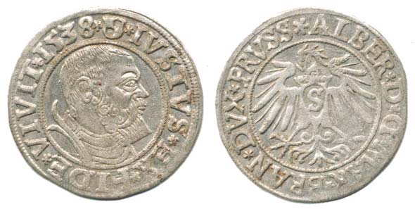 Groš pruský lenní 1538 Kop. II./ str.34; Stroncz. 7