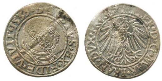 Groš pruský lenní 1539 Stroncz. 7; Kop. 3780_mírný přehyb