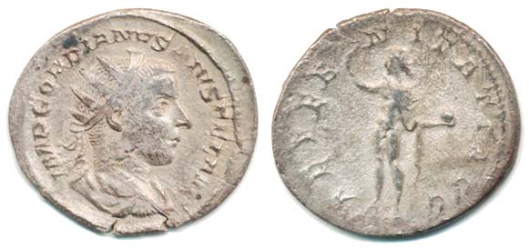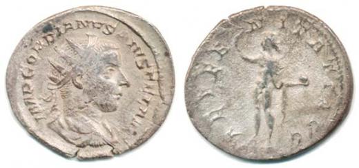 Antoninián, stoj.Sol se zvednutou pravou rukou, v levé drží globu s AETERNITATI AVG RIC 83; Sear 8603