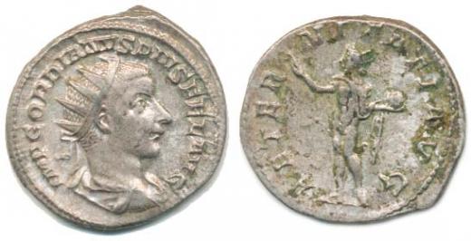 Antoninián, stoj.Sol se zvednutou pravou rukou, v levé drží globu s AETERNITATI AVG RIC 83; Sear 8603