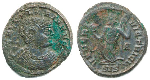 AE 24, stoj.Venuše drží jablko a zvedá si závoj, v poli půlměsíc - A VENERI VICTRICI minc.Sisica (SIS) RIC 211