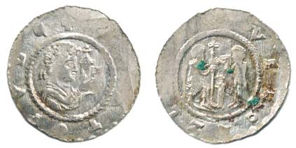 Denár C - 460 "R"_čast.nedor.opis, tém.