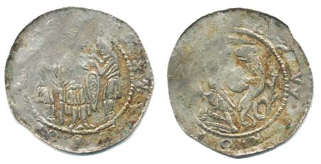 Denár C - 582 +starý podložní štítek_část.nedor., jinak