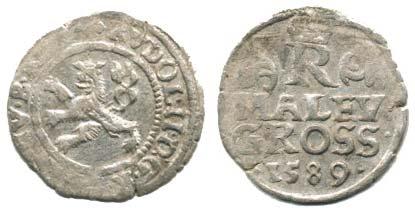 Malý groš 1589, K.Hora-Šatný HN 1b tečky po str. letopočtu _mírně nedor.opis, hr.
