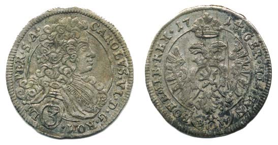 3 kr. 1714 BW, K.Hora-Wohnsiedler var.: D.G.ROM. / BOHEMIE.REX "R"