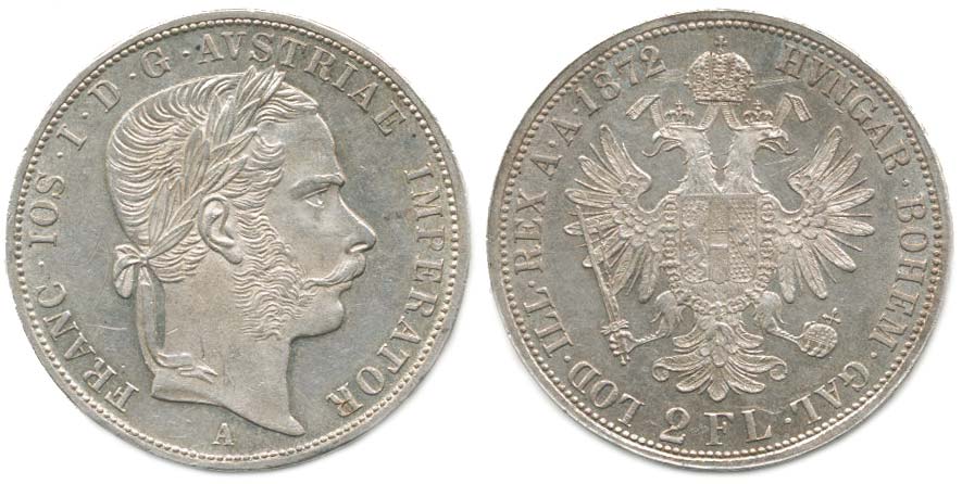 Dvouzlatník 1872 A "RR"_dr.škr. za hlavou, jinak