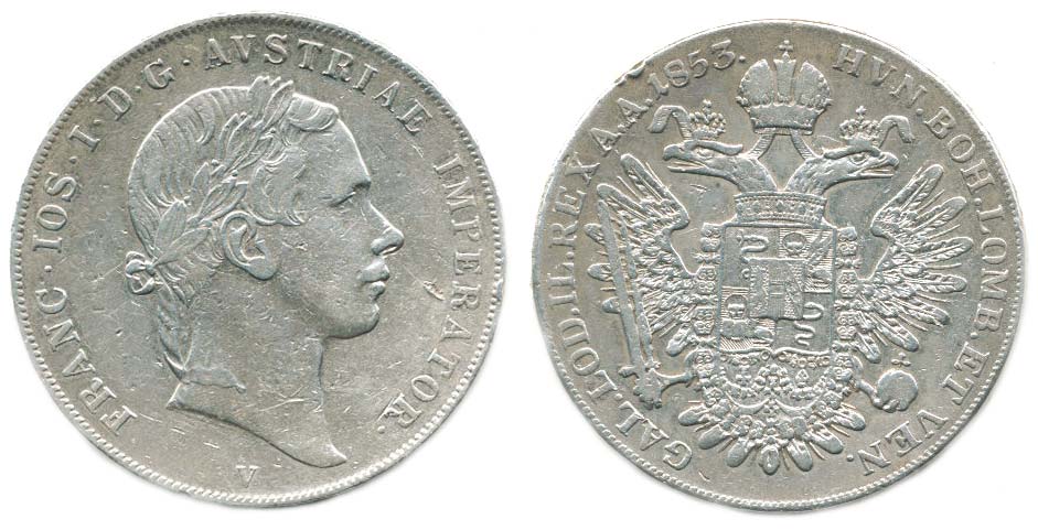 1 Scudo 1853 V "RR"_dr.sek v ploše, n.hr., tém.