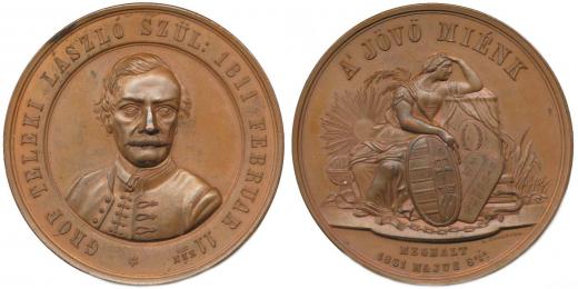 Uhry - Gróf Teleki László, poprsí čelně / úmrtní medaile 1861 sign.: A.Kleeberg bronz 58 mm Mont: 1555