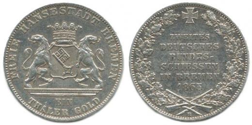 Tolar spolkový 1865 B - II. německé spolkové střelby KM 248 _vlas.rys.