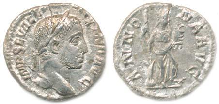 Denár, stoj.Annona drží v levé ruce nádobu s klasy, v pravé kormi dlo postavené na globu ANNONA AVG RIC 190