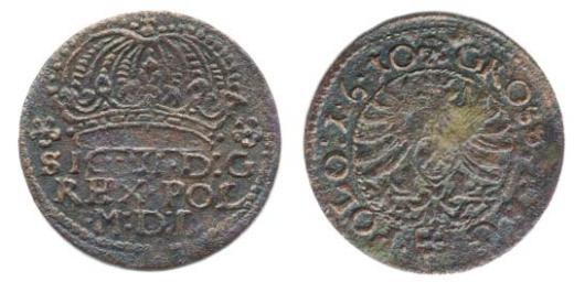 Groš korunní 1610, Krakow-Stanislawski "dobový Cu padělek" Kop. II/XIVk/5