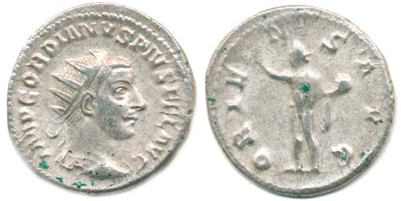 Antoninián, stoj.Sol pozvedá pravou ruku, v levé drží globus ORIENS AVG minc. Antiochie Sear 8626, RIC 213