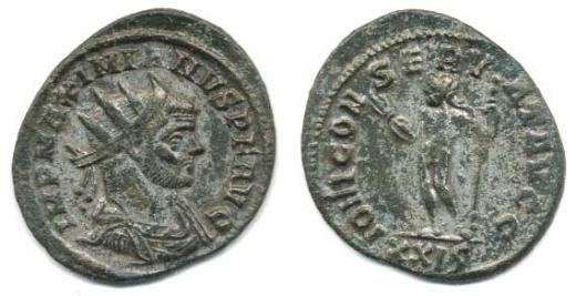Antoninian, Jupiter drží blesk a žezlo IOVI CONSERVAT, v úseči XXI S RIC 506 _zbytky původ. postříbření